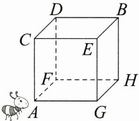 4. 如图,一只蚂蚁从正方体的点A沿着棱爬到点B,如果不故意绕远,那么一共有多少种不同的爬法?请一一列举出来。(4分)