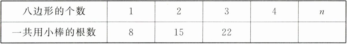|一共用小棒的根数|8|15|22| | |