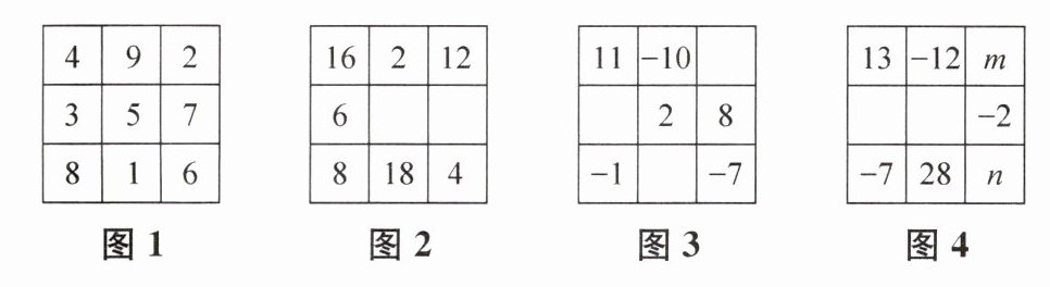 (1)如图2,请在两个空白方格中填上适当的数,以满足幻方游戏的要求.