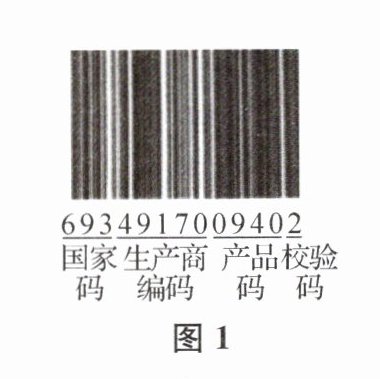 |商品条形码在生活中随处可见,它是商品的身份证. 商品条形码是由 13 位数字组成,每位数字都是不小于 0 且不大于 9 的整数,前 12 位数字分别表示“国家码、生产商编码和产品码”的相关信息,第 13 位数字表示“校验码”,如图 1 所示 693 代表国家码,49170 代表生产商编码,0940 代表产品码,2 代表校验码. 其中,校验码是用来校验商品条形码中前 12 位数字代码的正确性,它的编制是按照特定算法得来的.|6934917009402 国家码 生产商编码 产品码 校验码|