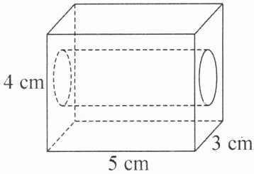 (1)圆孔的半径是$r=\frac{2}{2}=1(cm)$,则这个零件的体积为$5×3×4-π×1^2×5=45(cm^3)$.