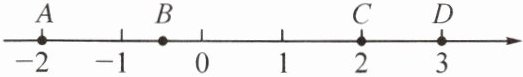 1. (教材习题变式)如图,数轴上有A、B、C、D四个点,其中所表示的数的绝对值最大的点是