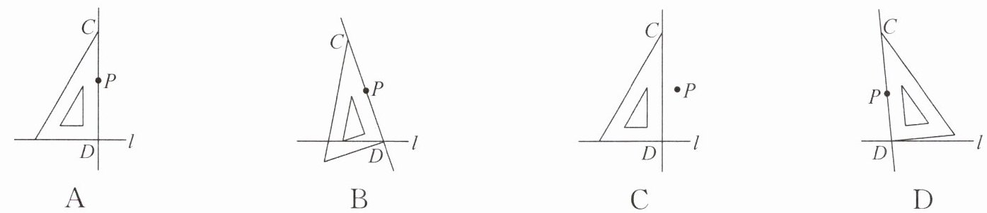 1. (教材例题变式)过点P作直线l的垂线CD,下面三角板的摆放正确的是 (