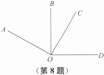 8. 如图,已知OA⊥OC,OB⊥OD,且∠AOD= 5∠BOC,则∠AOB的度数为______.