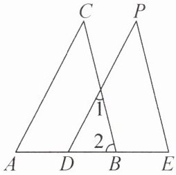 AC//DP,BC//PE.理由如下:因为∠1=∠C,所以AC//DP(同位角相等,两直线平行).因为∠2=∠E,所以BC//PE(同位角相等,两直线平行).