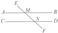 7.已知直线EF与直线AB、CD分别交于点M、N,且∠EMB= 138°,∠DNF= 42°.AB与CD