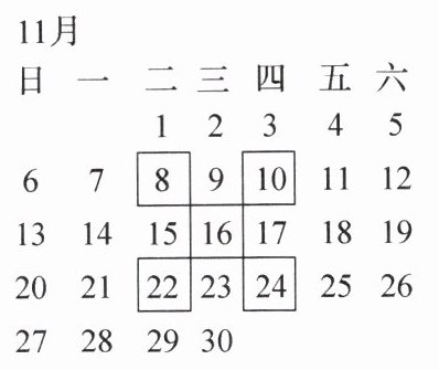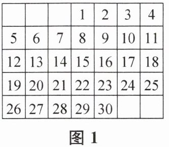 3. (1)如图1,吉吉同学用正方形框在某月的月历上圈出2×2个数,它们的和是32,则这四个数是______。