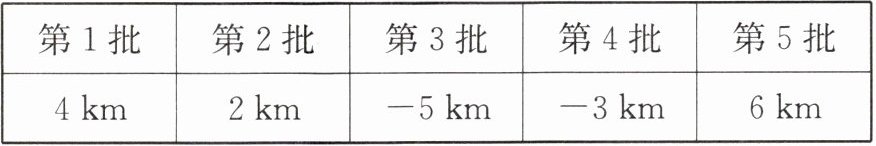(2)因为$|4|+|2|+|-5|+|-3|+|6|=20$(km),所以$20× 0.08=1.6$(L).答:在这过程中共耗油1.6 L.