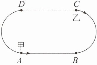 (1)设x s后两人首次相遇.根据题意,得4x+6x=100,解得x=10,所以甲跑的路程为4×10=40(m),200÷4-40=10(m).答:10 s后两人首次相遇,此时他们在直道 AB上,且到点 B 的距离为10 m.