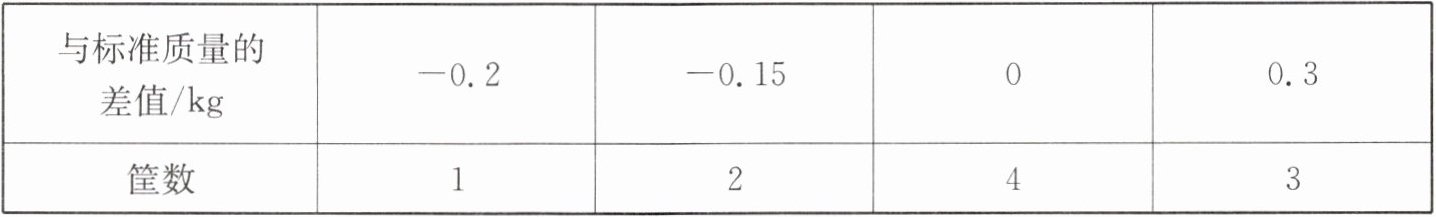 |与标准质量的差值/kg|-0.2|-0.15|0|0.3|