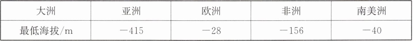 4.(2024·辽宁)亚洲、欧洲、非洲和南美洲的最低海拔如下表所示.