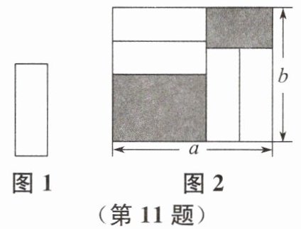 11. 如图,把四张形状、大小完全相同的小长方形卡片(如图1)不重叠地放在一个长为a cm、宽为b cm的长方形内(如图2),未被卡片覆盖的部分用阴影表示,则图2中两块阴影部分的周长和是( )