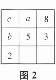 D 解析:如题图,根据题意可得2+5+8=3+5+b,2+5+8=2+b+c,2+5+8=8+a+c,解得b=7,c=6,a=1.