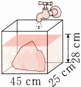 6 一个无水鱼缸中放有一块高为 28 厘米、体积为 3500 立方厘米的假山石。如果以每分钟 7 立方分米的流速向鱼缸内注水(如图),那么至少需要多少分钟才能将假山石淹没?
