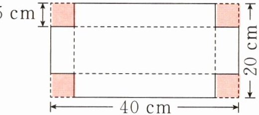 3. 数学活动小组准备用一块长方形铁皮制作一个长方体铁盒,如图。他们先剪掉了四个角上所有涂色部分的正方形铁皮(每个正方形都相同),再沿虚线折起来,做成无盖的长方体铁盒。