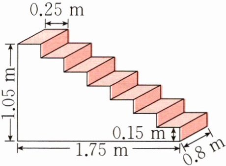 2. 艺术节期间,工人师傅要给台阶表面(下图中涂色部分)铺红地毯,每节台阶大小一样,至少需要多少平方米的红地毯?