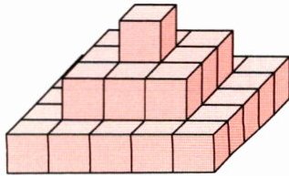 4 下图是一个由若干个相同小正方体摆成的物体,把它的表面(包括底面)全部涂色,再把小正方体分开,有多少个小正方体是3面涂色的?