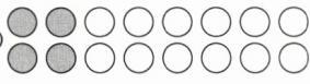 把16平均分成( )份,将其中( )份涂色表示,涂色部分有( )个○。
