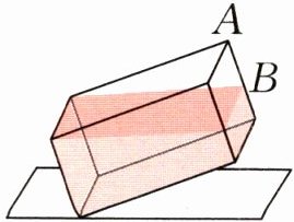 8 有一个长64厘米、宽40厘米、高32厘米的长方体容器,将其装满水后平放在桌上。然后把它像下图这样斜放,水流出$\frac {5}{16}$,这时线段AB长多少厘米?