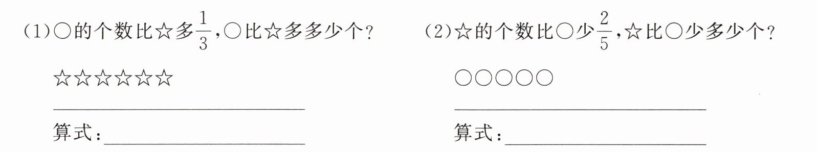 (1) 题目考查对分数意义的理解以及数量关系式的建立。对于“书法组人数比美术组人数多$\frac {2}{7}$”,$\frac {2}{7}$表示的是把美术组人数看作单位“1”,然后美术组人数乘以$\frac {2}{7}$就得到书法组比美术组多的人数。