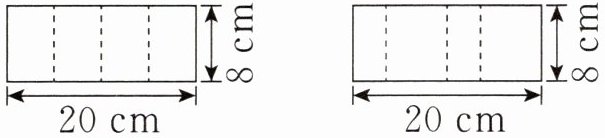 3. 如图,把两张长 20 厘米、宽 8 厘米的长方形纸分别沿虚线折起,均可以折成一个长方体。照下面两种折法折成的长方体的体积相等吗?请说明理由。(3 分)