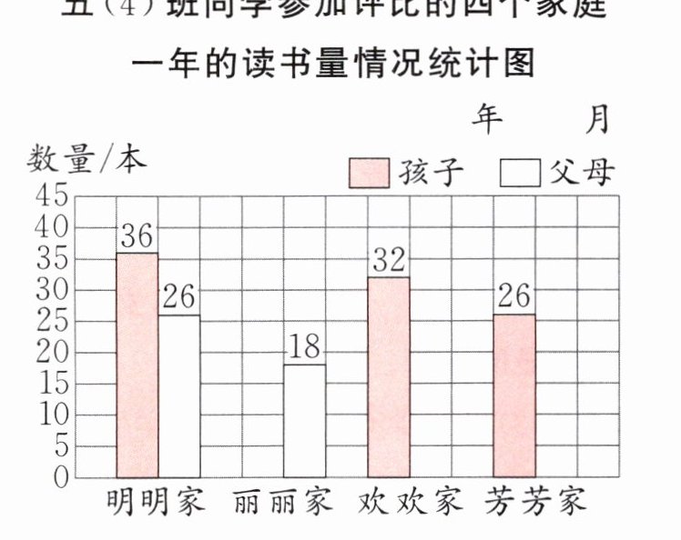 四、下面是五(4)班同学参加阳光小学“书香家庭”评比的四个家庭一年的读书量情况。