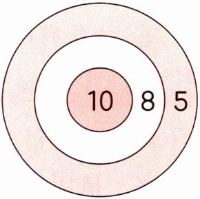 4 一张靶纸共三圈,如图。游戏规则是:投中外圈、中圈、内圈,分别可得5分、8分、10分,没投中得0分。