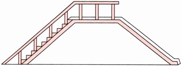 5 一个滑梯侧面的形状是梯形(如下图),这个梯形的上、下底的和是9米,高是2米。
