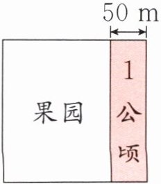 5 有一个长方形果园,把它的宽增加50米后,果园的形状变成了正方形(如下图),面积增加了1公顷。原来长方形果园的面积是多少公顷?