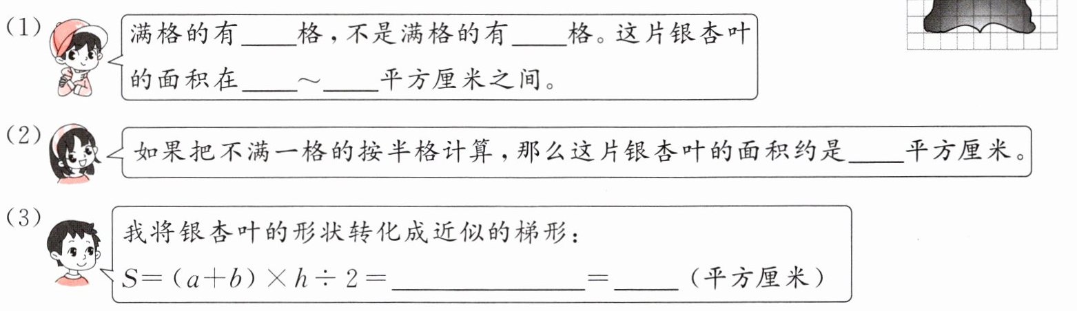 1 图中每个小方格表示1平方厘米,同学们在估计这片银杏叶的面积。