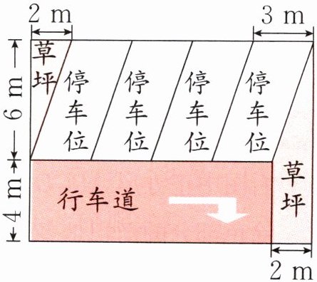 4 幸福小区有一块长方形空地,要在这块空地上规划一些停车位,设计图如下。每个停车位设计为完全相同的平行四边形,其余部分为草坪和行车道。