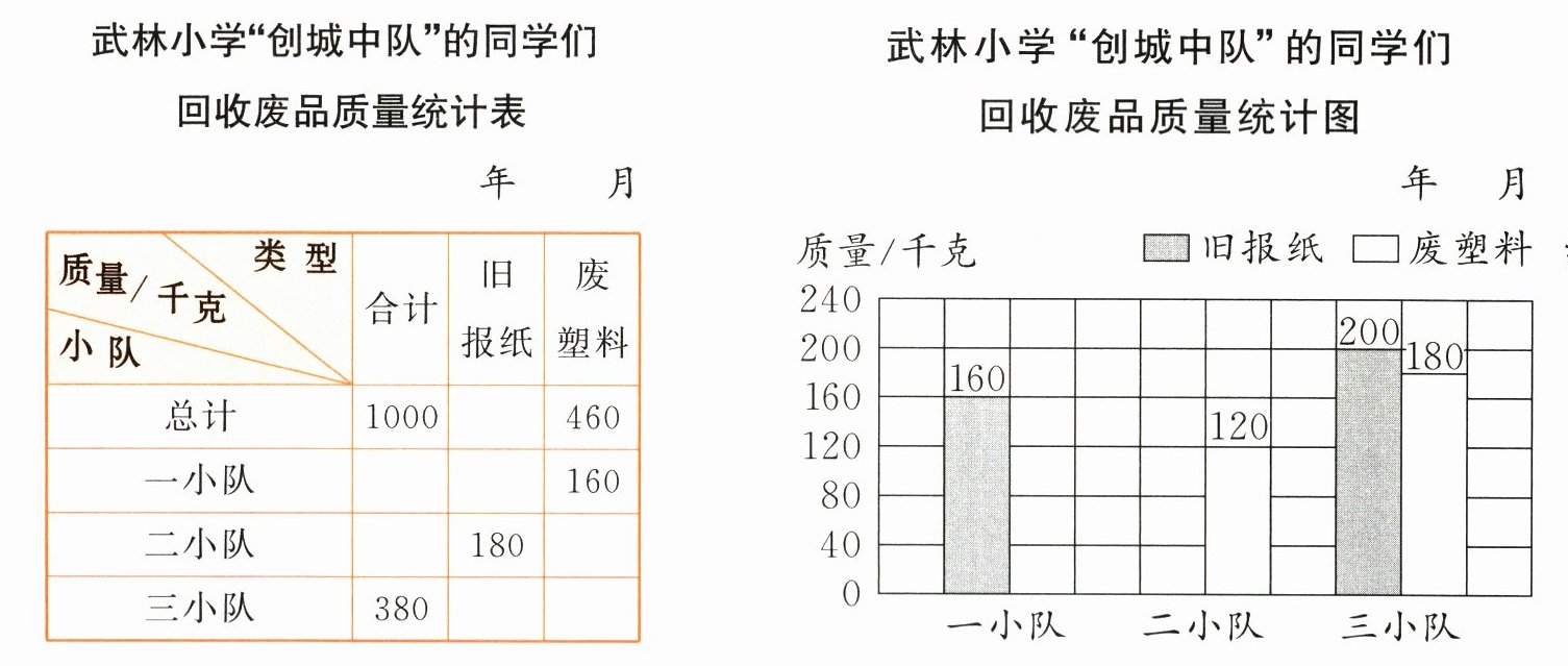 1. 540 320 160 300 120200 180(日期以学生实际填表时间为准)武林小学“创城中队”的同学们回收废品质量统计图2025 年 5 月