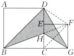 如图,线段DH与线段FG平行,连接FC、FD,则线段FC与线段DB平行,通过等积变形,将计算三角形DHG的面积转化为计算三角形DHF 的面积。因为点B、点H、点F在同一条直线上,所以此时涂色部分与第3题中涂色部分相同。10×10÷2=50(平方厘米)