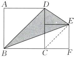 如图,连接EC,则线段EC与线段DB平行,通过等积变形,将计算三角形BED的面积转化为计算三角形BCD的面积,此时涂色部分变为大正方形的一半。