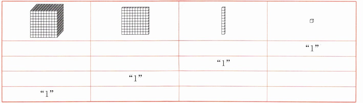 5 观察下面各图,当其中一幅图表示整数“1”时,其余三幅图分别表示多少?(填小数或整数)