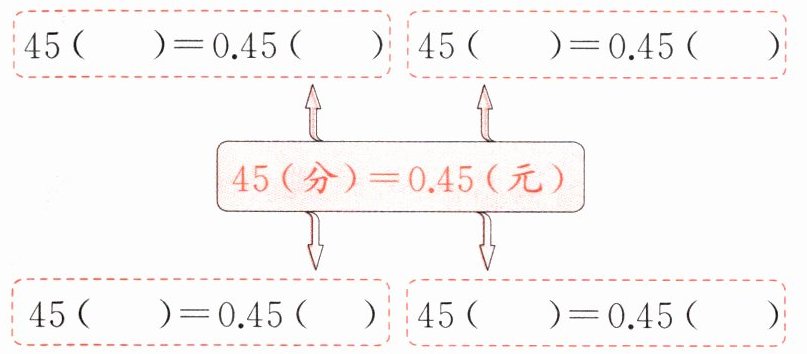 4 照样子在下图中的括号里填合适的单位,使等号左右两边的数量相等。