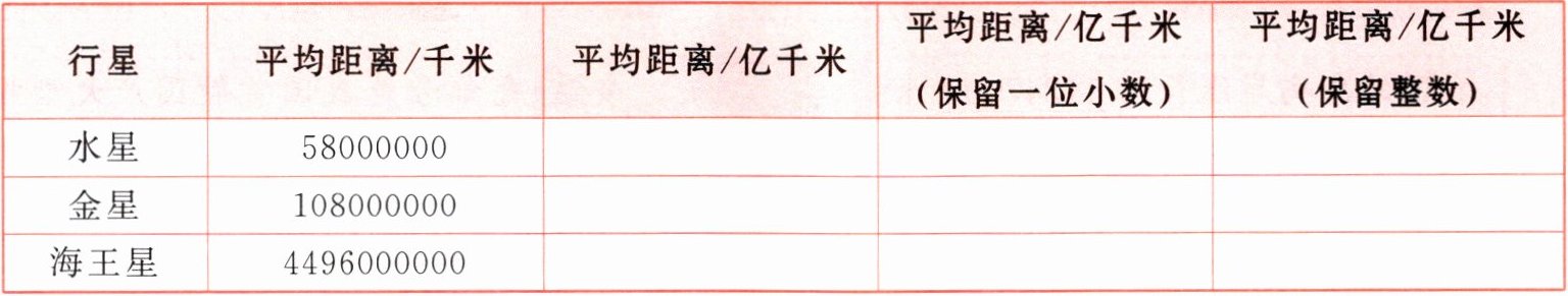 2 下面是部分行星到太阳的平均距离,把表中的数改写成用“亿”作单位的数,再写出近似数。