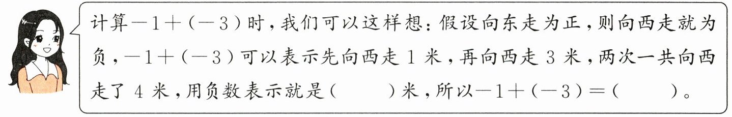 想一想,-1+(-3)、-7+(+5)怎么计算呢?