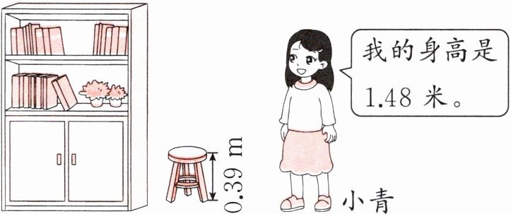 4 小青站在凳子上的高度比书柜高0.18米,书柜的高度是多少米?