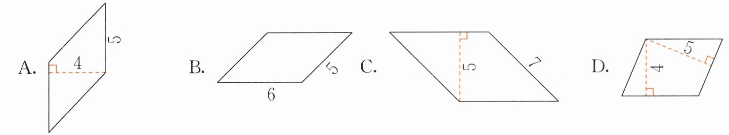 4. 下面与涂色的平行四边形面积相等的图形有(