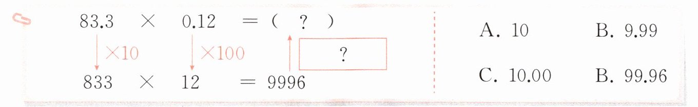 3 下面左边是明明计算$83.3×0.12$的思考过程,这道题的结果保留两位小数约是(