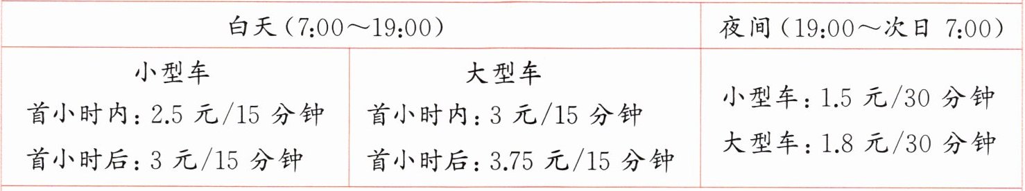 6 某市开始实施道路停车改革并实行电子收费,收费标准如下。