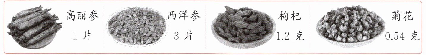 3. 中药铺要包装一种养生茶,每袋养生茶的配料如下图。