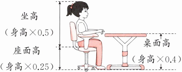 (2)桌椅高度设置的问题:高度不合适的桌椅不仅影响坐姿,还可能导致近视和脊柱弯曲。为此,爸爸给笑笑买了一套可调式桌椅。笑笑的身高是 1.46 米,根据下图,她的桌面应比座面高多少厘米?