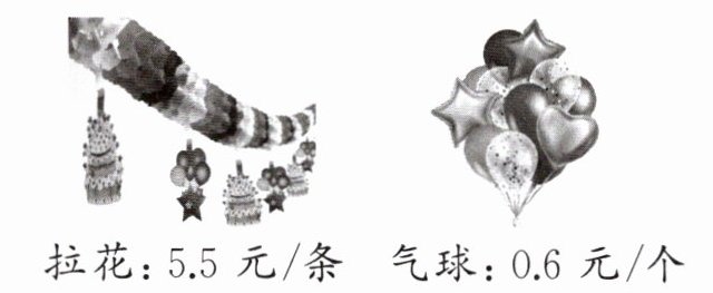 4 赵俊彦同学为了装饰教室,带了30元钱去精品店。买了4条拉花后,剩下的钱最多能买多少个气球?