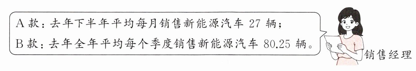 (2)该 4S 店去年第二季度平均每月销售 A 款新能源汽车约多少辆?去年平均每月销售 B 款新能源汽车多少辆?(除不尽的得数精确到十分位)