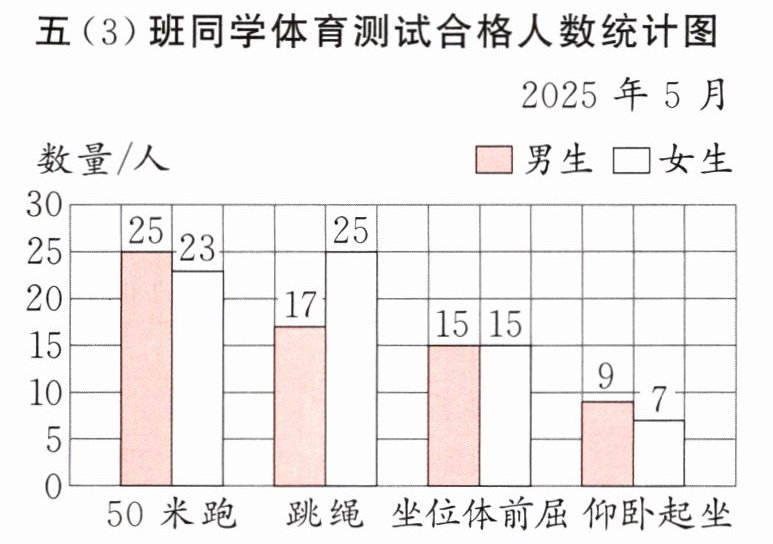 )项目上,女生表现出明显的优势。3. 五(3)班至少有(