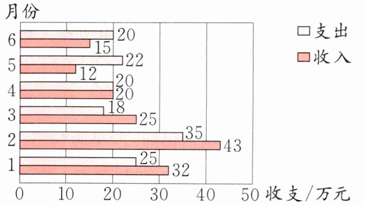 三、王叔叔开了一家店,下面是这家店去年上半年的收入和支出情况统计图。
