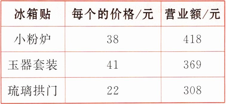 |冰箱贴|每个的价格/元|营业额/元|