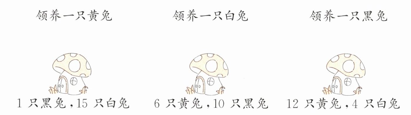1. 小叮当想从农场领养一只小兔子,农场里有三个混养的兔子窝,如下图,你能帮小叮当选出最有可能实现愿望的兔子窝吗?连一连。(6分)